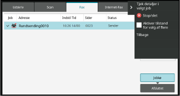 liste. For at bekræfte status på faxjobbet, skal du trykke på tilstandsvisning