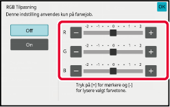 HENTNING AF EN DESTINATION FRA EN ADRESSEBOGTryk på tasten [Andet], og tryk derefter på tasten [RGB Tilpasning].