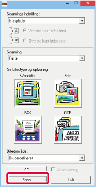 knap:Når et visningsbillede vises, og et scanningsområde ikke