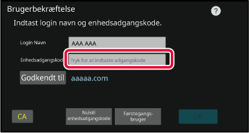 Enhedsadgangskoden er adgangskoden til godkendelse på maskinen.