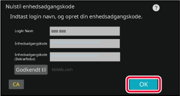 Tryk på tasten "Nulstil enhedsadgangskode" på den viste skærm