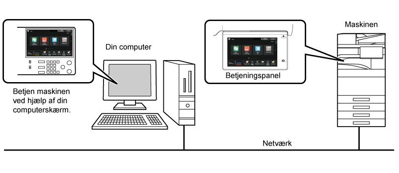 kan du betjene maskinen fra en VNC-klient. Se anvisninger om at