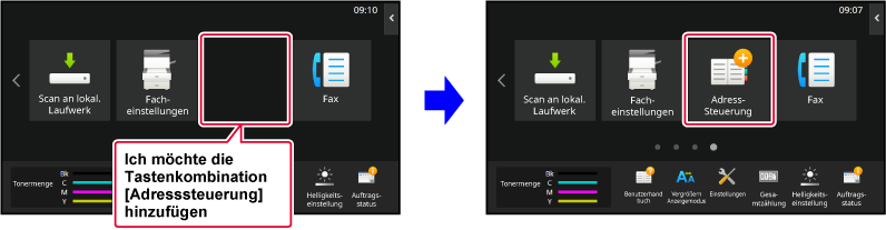 Die Schnellzugriffstaste wird an die Stelle verschoben, die berührt wurde.Berühren Sie nach dem Beenden der Einstellungen die Taste [Logout].