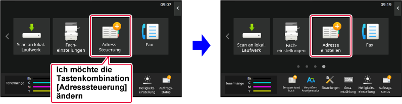 Geben Sie das Administratorenpasswort ein.Berühren Sie die Schnellzugriffstaste, die Sie verschieben möchten und berühren Sie [Taste verschieben].