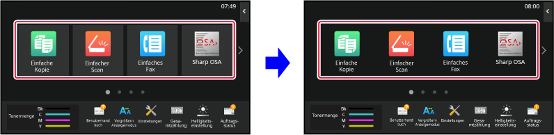 Die Schnellzugriffstasten werden auf das werksseitige Standardlayout zurückgesetzt.Berühren Sie nach dem Beenden der Einstellungen die Taste [Logout].