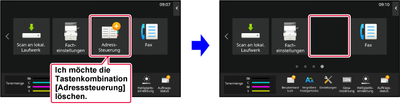 Geben Sie das Administratorenpasswort ein.Berühren Sie die Schnellzugriffstaste, die Sie löschen möchten und berühren Sie [Löschen-Taste].