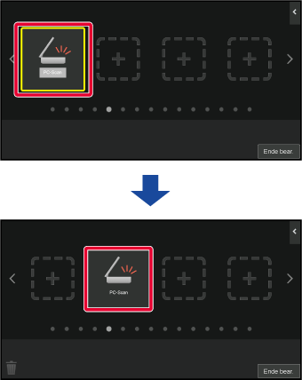 Rings um die ausgewählte Schnellzugriffstaste wird ein gelber Rahmen angezeigt. Wenn die Schnellzugriffstaste ausgewählt wurde, berühren SieBerühren Sie die Taste [Ja].