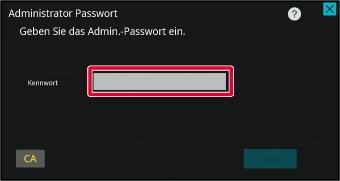 Geben Sie das Administratorenpasswort ein.Berühren Sie eine Stelle ohne Schnellzugriffstaste.