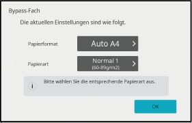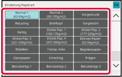AUSWAHL DES PAPIERFACHS FÜR DAS KOPIERENBerühren Sie die Taste [Papierart], berühren Sie die festgelegte Papierart-Taste, und berühren Sie dann die Taste [OK].