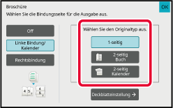 Berühren Sie abhängig vom Original die Tasten [1-seitig], [2-seitig Buch] oder [2-seitig Kalender].