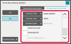 Berühren Sie die Taste [On], und geben Sie die erforderlichen Elemente auf der Registerkarte [Standardeinstellungen] an.
