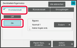 Berühren Sie die Taste [Frontdeckblatt] und anschließend die Taste [On].