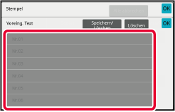Wenn Sie die Taste [Voreing. Text] berühren, können Sie unter