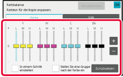 Verwenden Sie die Registerkarte [Farbe] für die Farb-Kopiereinstellungen