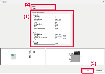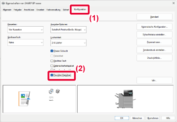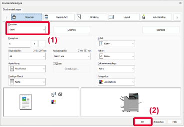 Erläuterungen der Einstellungen können Sie in der Druckertreiberhilfe finden.Wenn Sie dieses Gerät als geteilten Drucker