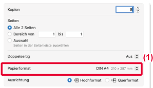 unter "Papiergröße" im Seiteneinstellungsfenster zum Drucken verwendet.