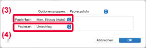 Für den manuellen Einzug muss zudem die Papierart angegeben werden.