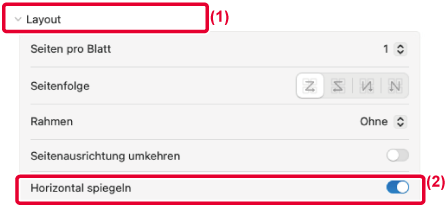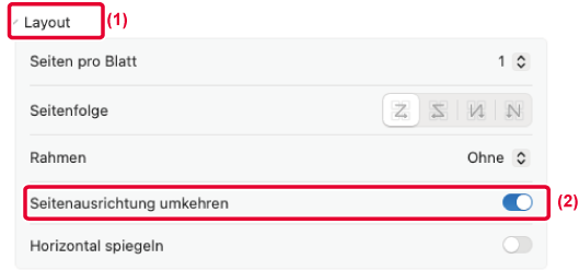 Druckbilds um 180 Grad, sodass es korrekt auf Papier gedruckt werden kann,