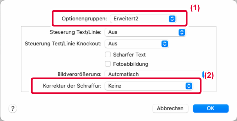 Die Schraffurkorrekturfunktion des Druckertreibers kann dazu