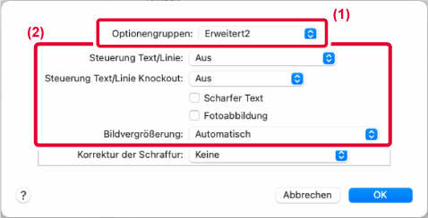 Sie können die Kanten von Text und Grafiken runder oder schärfer einstellen. Automatisch: Es wird eine optimale Bilderweiterung ausgeführt. Aus: Es findet keine Bilderweiterung statt. Schärfe: Die Bilderweiterung wird mit Schärfe angewandt. Weich: Die Bilderweiterung wird geringfügig angewandt. |
