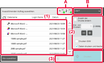 werden nur Druckaufträge des momentan angemeldeten Benutzers angezeigt.