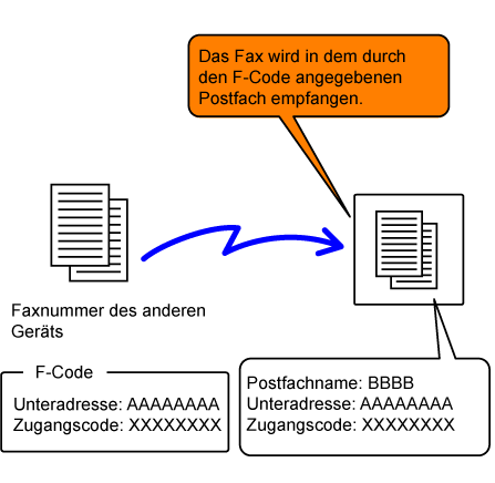 Durch das Senden eines Faxes an ein F-Code-Postfach