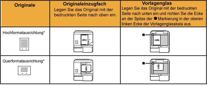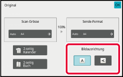 Geben Sie die Ausrichtung des bei Schritt 1 eingelegten Originals an.Berühren Sie die Taste [S/W Start] oder [Farbe Start], um mit dem Scanvorgang des Originals zu beginnen.