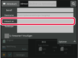 Wenn Sie die Antwortadresse ändern möchten, berühren Sie das Eingabefeld [Antwort an].