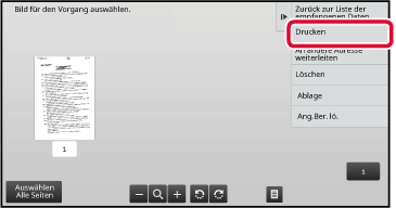 Die empfangenen Bilddaten werden angezeigt.Berühren Sie das Bild, das Sie drucken möchten, und berühren Sie dann im Aktionsfeld die Taste [Drucken].