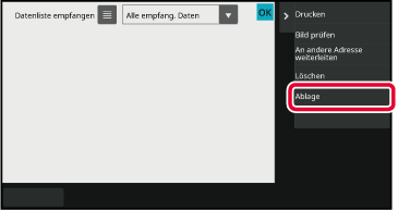Die empfangenen Daten werden aufgelistet.Berühren Sie die Taste für die empfangenen Daten, die Sie speichern möchten, und dann im Aktionsfeld die Taste [Ablage].