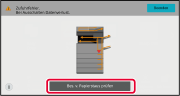 Berühren Sie in diesem Fall das Feld [Bes. v. Papierstaus prüfen] im Touch-Panel.
