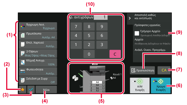 Η εύκολη λειτουργία καθιστά εύκολη την επιλογή των βασικών ρυθμίσεων για την αντιγραφή.