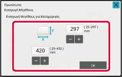 Αγγίξτε τις περιοχές στις οποίες εμφανίζονται τα μεγέθη πλάτους και ύψους αντίστοιχα και εισαγάγετε τα μεγέθη χρησιμοποιώντας τα αριθμητικά πλήκτρα.Πατήστε το πλήκτρο [OK].
