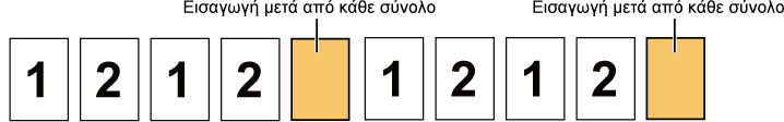 Όταν εισαγάγετε σελίδες διαχωρισμού μεταξύ των σετ αντιγράφων,