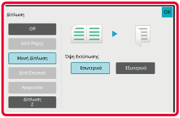 Αφού ολοκληρώσετε τις ρυθμίσεις, πατήστε [OK].Αυτή η λειτουργία χρησιμοποιείται για δίπλωση
