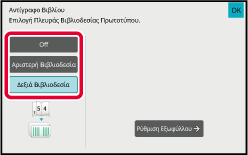 Τοποθετήστε τις ανοιγμένες σελίδες από το "πρώτο και τελευταίο φύλλο".Πατήστε το πλήκτρο [Άλλα] και το πλήκτρο [Αντιγρ. Βιβλ.].
