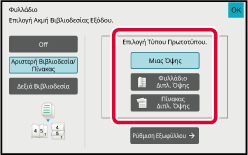 Πατήστε τα πλήκτρα [Μιας Όψης], [Φυλλαδιο Διπλ. Οψησ] ή το πλήκτρο [Πινακασ Διπλ. Οψησ] ανάλογα με το πρωτότυπο.