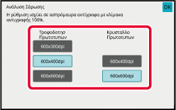 Μπορείτε να καθορίσετε την ανάλυση τόσο στον τροφοδότη πρωτοτύπων όσο και στο κρύσταλλο πρωτοτύπων. Αφού ολοκληρώσετε τις ρυθμίσεις, πατήστε διαδοχικά το πλήκτρο [OK] και το πλήκτρο [Προηγούμεν].Τοποθετήστε το πρωτότυπο.