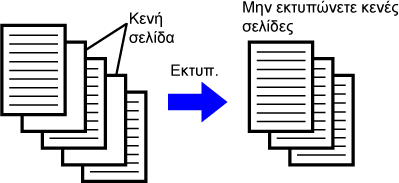 Εάν το σαρωμένο πρωτότυπο περιέχει κενές σελίδες, αυτές παρακάμπτονται κατά την εκτύπωση. Το μηχάνημα ανιχνεύει τις κενές σελίδες και δεν τις εκτυπώνει. Έτσι αποφεύγετε την εκτύπωση περιττών σελίδων, χωρίς να χρειάζεται να ελέγχετε αν υπάρχουν κενές σελίδες πριν την εκτύπωση.