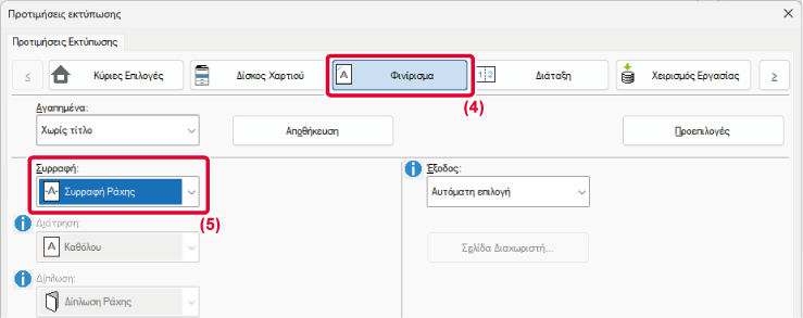έχουν επιλεγεί τα "Φυλλάδιο" και "Συρραφή", αυτή η λειτουργία