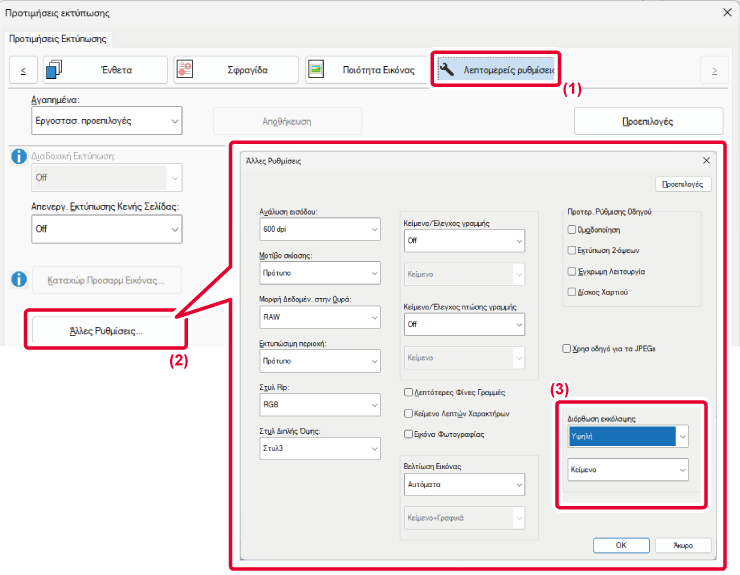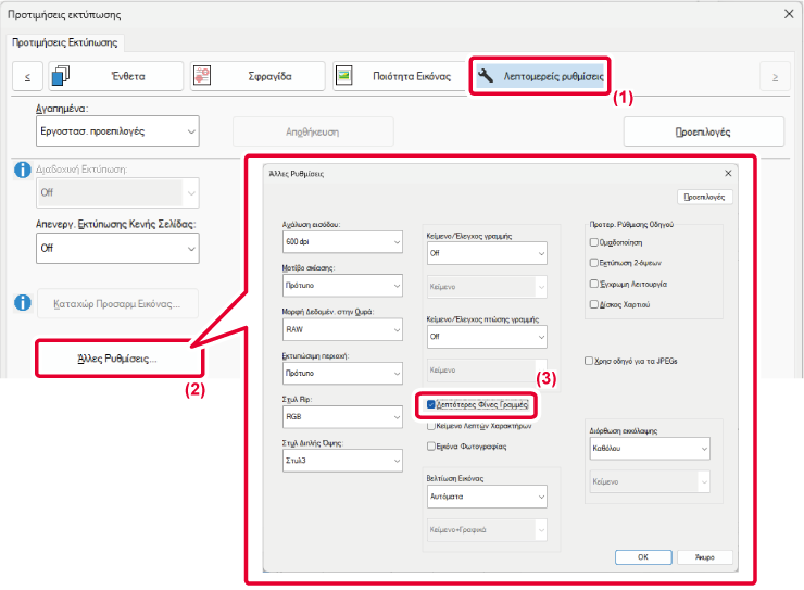 Έλεγχος καθαρισμού χρωμάτων κειμένου/γραμμών |