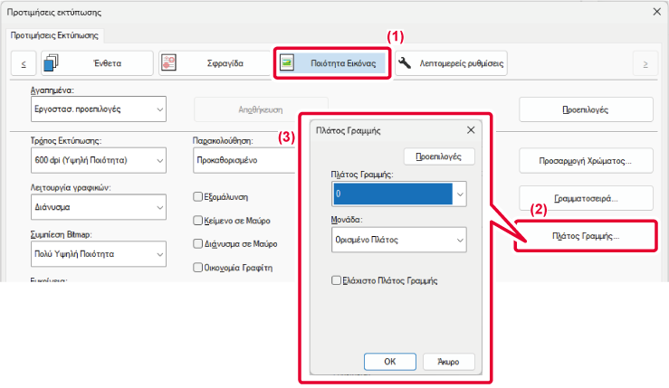 της γραμμής, όταν οι γραμμές εκτύπωσης δεν είναι ευκρινείς στην