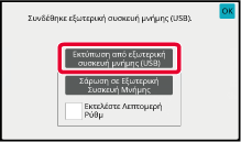 Όταν εμφανιστεί η οθόνη για την επιλογή ενέργειας, πατήστε [Εκτύπωση από εξωτερική