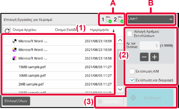 μόνο οι εργασίες εκτύπωσης του συνδεδεμένου χρήστη.
