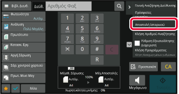 Στην Εύκολη ΛειτουργίαΣτη βασική οθόνη ή στην οθόνη βιβλίου διευθύνσεων πατήστε στην επιλογή [Αποστολή Ιστορικού] του πίνακα λειτουργίας.