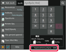 Μπορείτε να δείτε την υπόλοιπη χωρητικότητα μνήμης φαξ στη βασική οθόνη της λειτουργίας φαξ.
