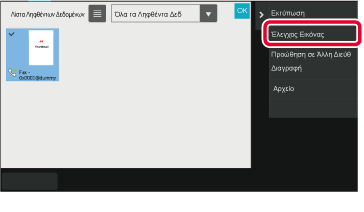 Πατήστε το πλήκτρο των ληφθέντων δεδομένων που θέλετε να ελέγξετε και το πλήκτρο [Έλεγχος Εικόνας] στον πίνακα λειτουργίας.