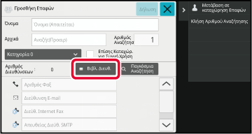 Στην οθόνη βιβλίου διευθύνσεων πατήστε [Προσθήκη Νέου] στον πίνακα λειτουργίας ή το εικονίδιο [Έλεγχος Διεύθυνσης] στη αρχική οθόνη.