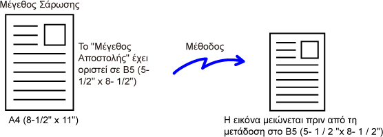 σάρωσης είναι A4 (8-1/2" x 11") και το μέγεθος αποστολής είναι B5