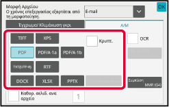 *1 Όταν ως τύπος αρχείου επιλέγεται PDF (κρυπτογραφημένο και με υψηλή συμπίεση), μπορεί να χρησιμοποιηθεί η Συμπίεση Flate για τη μείωση του μεγέθους του αρχείου.